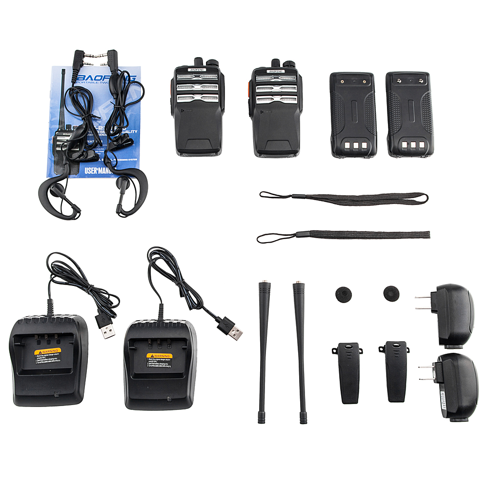 Come to carry a walkie talkie with you to rest assured emergencies! This 2pcs BAOFENG BF-230 Walkie Talkie US Plug Pro/3.7v/1500mAh/400-470MHz Black must be your honest friend! Adopting precise and sophisticated electronic components, it is stable in performance and reliable in receiving signal even in remote mountainous regions or dense forest. Built-in 1500mAh battery, it can keep working for quite a long time. With simple and elegant design, it can be used on many occasions, such as airports, manufacturing plants, concerts, etc. Just make a order now!