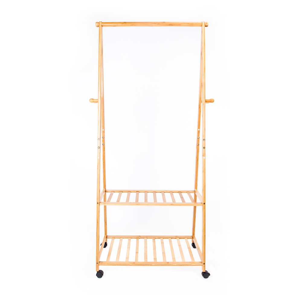 We will offer this 2-layer Portable Practical Storage Clothes Hanger with Wheel to you. It comes with exquisite design and elegant appearance. This clothes hanger is absolutely the perfect design goes well with a wide variety of clothes. It is made of high quality moso bamboo material, which makes it durable and reliable in use. It is great to facilitate the hanging of a coat, jacket, sweater, shirt and so on. With the 2-layer storage design, it can help you to save a lot of space!