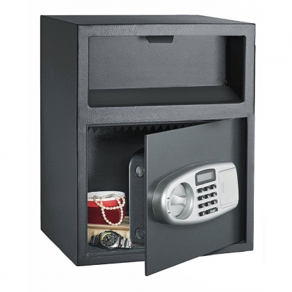Electronic Security Safe Box Black Box & Silver Gray Panel DS45TE offers two options to open, code or key. The steel safe can be used to hold jewelry, noble metals, cash, documents, or other hard-to-replace items, protecting valuable assets in your home or business. Solid and robust steel construction with sturdy locks keeps your belongings secure at all times so you can rest assured to rely on it. It surely is worth your investment!