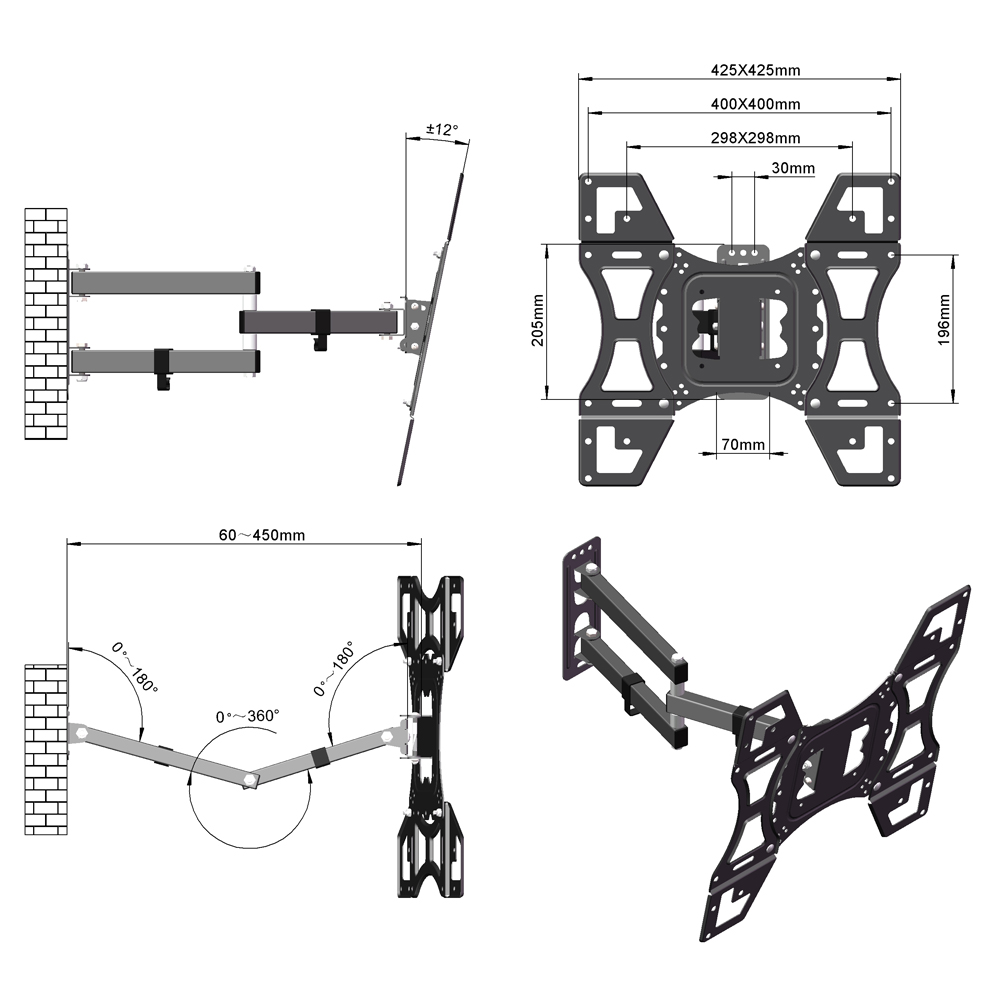 ♥ Fits VESA mounting hole patterns:400mm x 400mm max