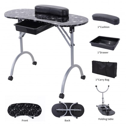 Today we are glad to recommend you this Portable Foldable Manicure Table with Silver Flower Surface. With portable and foldable design, it is easy to use and store, which will not occupy too much space. Adopting reliable and superior material, the manicure table is durable and reliable for you use a long time. It is suitable for professional salon, studio or home use. Equipped with four PVC locking wheels, this desk is easy to be moved. How can you miss it anymore? Action is better than thinking!